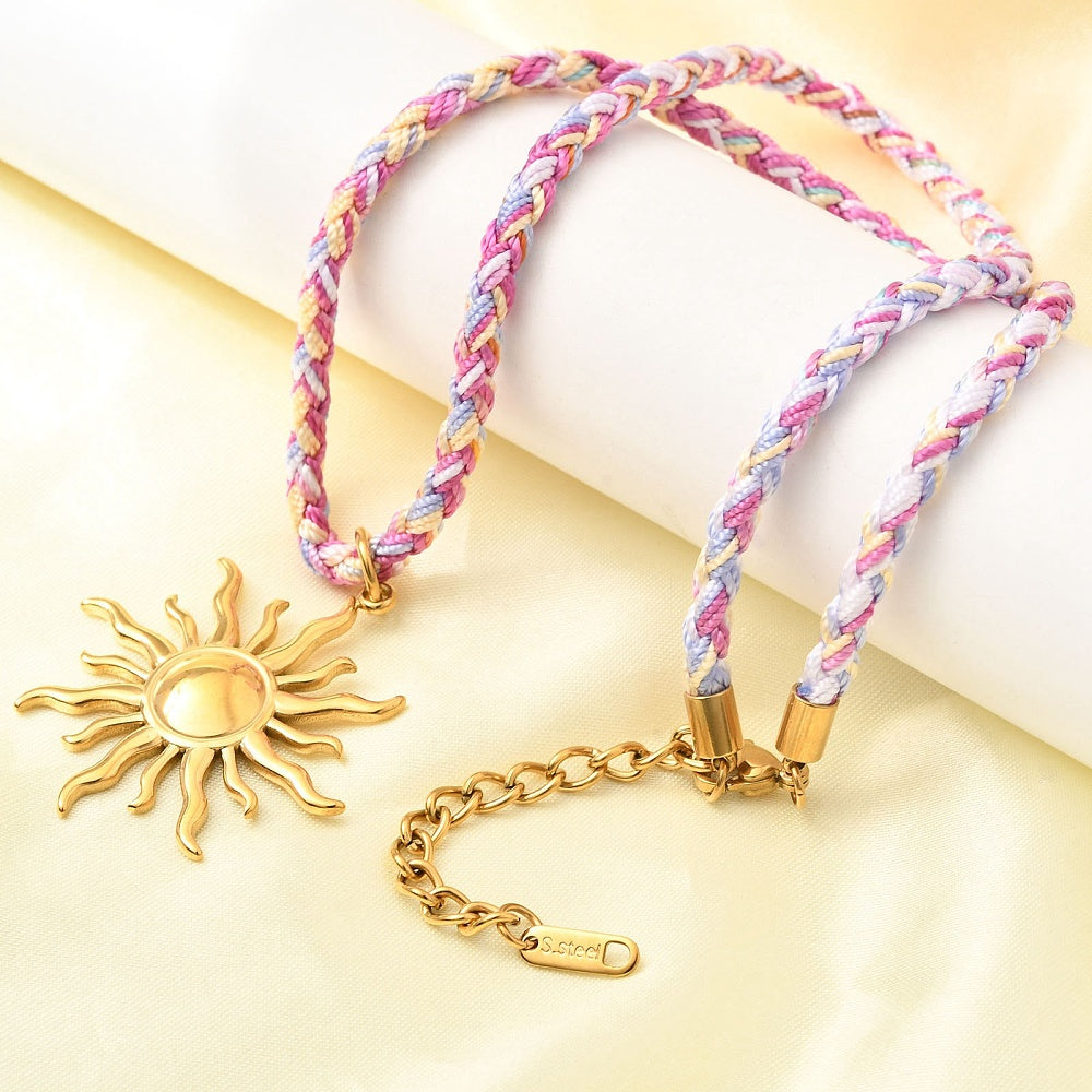 Collar de nylon rosa tejido, con sol en acero inoxidable de 3.5 cm